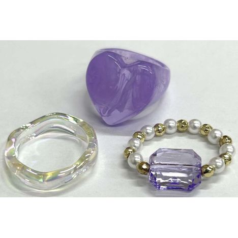 推しカラーのストーンやアクリルを使ったリングセットです。ストーンタイプのみゴムテグス使用のフリーサイズとなっています。こちらはすべて紫のみのアソートです。