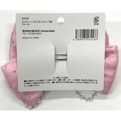 ストーンが散りばめられた生地が華やかな、大ぶりのリボンクリップです。 パールチェーンが施してある豪華でプリンセス感のあるアイテムです。 こちらはすべてピンクのみのアソートです。