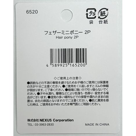 トレンドのフェザーモチーフを使用したミニポニーセットです。2個セットなので、ツインテールにぴったりですし、お友達とお揃いでつけても可愛いアイテムです。
